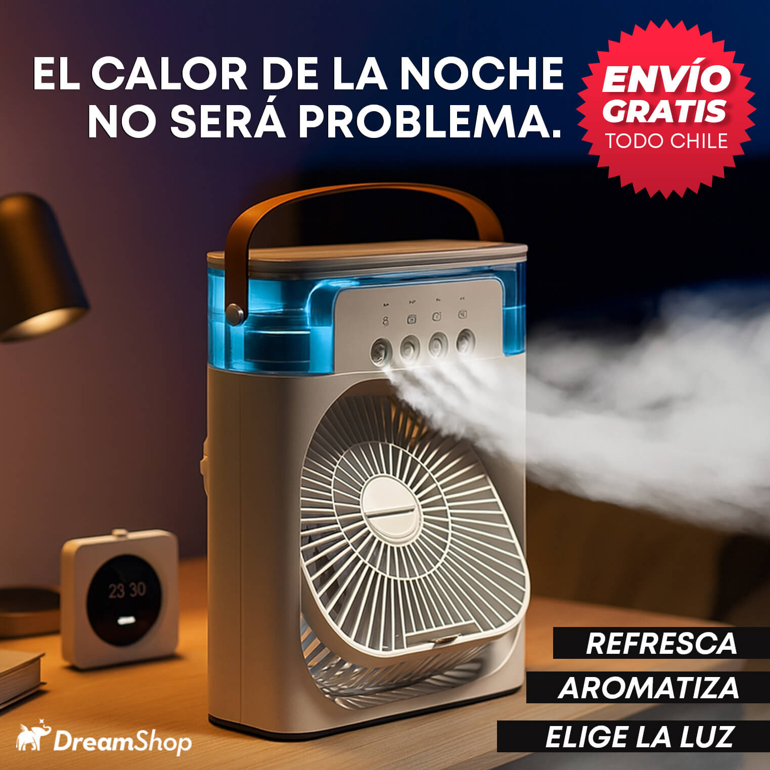 VENTILADOR HUMIDIFICADOR ¡Refresca y aromatiza día y noche!